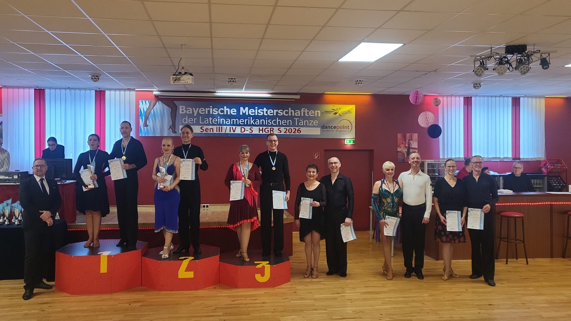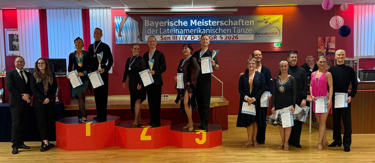 Anfang des Jahres werden seit etlichen Jahren die Landesmeisterschaften in der Lateindisziplin ausgetragen. In diesem Jahr wurden sie für die Hauptgruppe und auch die Senioren III und IV wieder durch den TSC dance point Königsbrunn ausgerichtet. Das nutzen natürlich auch Paare der TSA, um sie hier anzutreten.